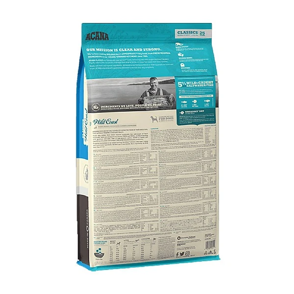 - ACANA Wild Coast is loaded with nourishing protein and Omega fatty acids from wild-caught herring, flounder, and hake.