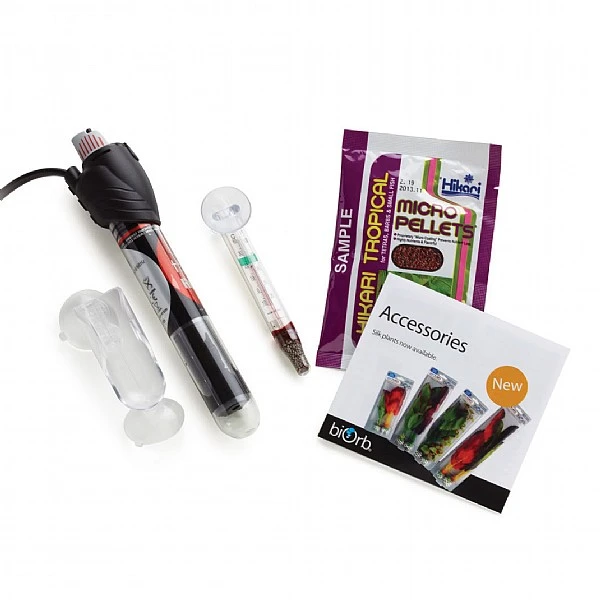 - It contains a 50W Aquarium Heater, capable of heating the water in a biOrb aquarium (up to 60 litres), along with a Heater Stand and a Thermometer