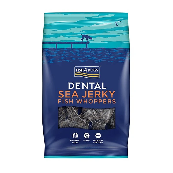 - Sea Jerky Fish Whoppers are part of the Fish4Dogs Dental range containing treats that can help support dog’s dental health