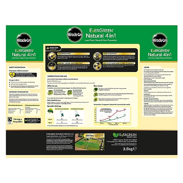 Miracle-Gro Natural 4-in-1 Lawn Food, Weed And Moss Prevention 85m2